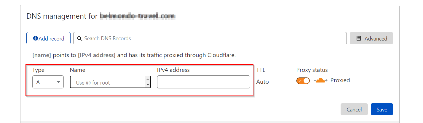 Make sure the Proxy status switch is turned off (DNS Only). The little cloud icon should be grey.