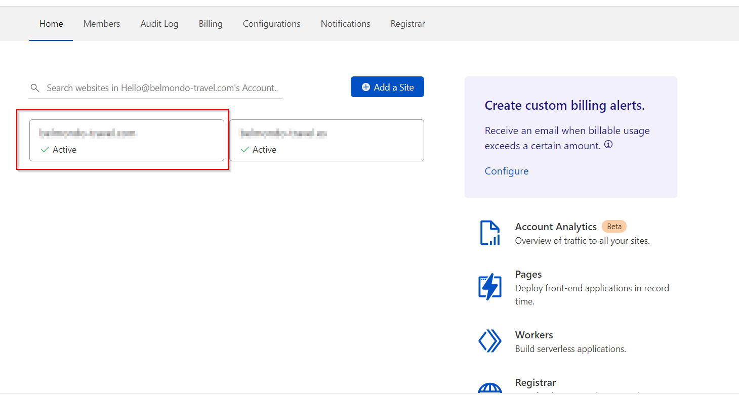 Open a new tab in your browser and go to Cloudflare. Log in to your account and open the domain you want to use.