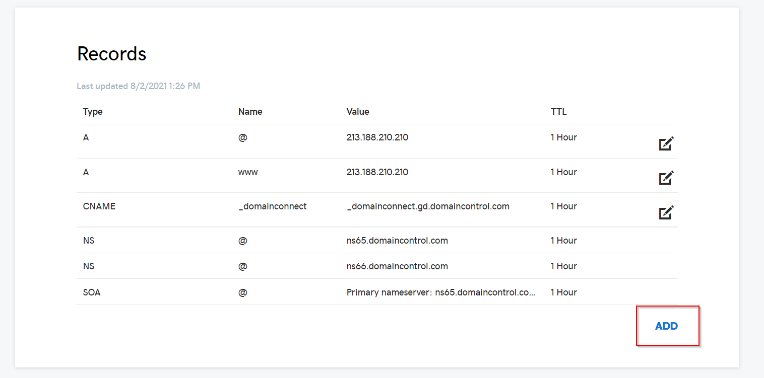 You will see a list of 2 records on the right.* These are so-called DNS records that you will add to your domain on GoDaddy in the next steps.