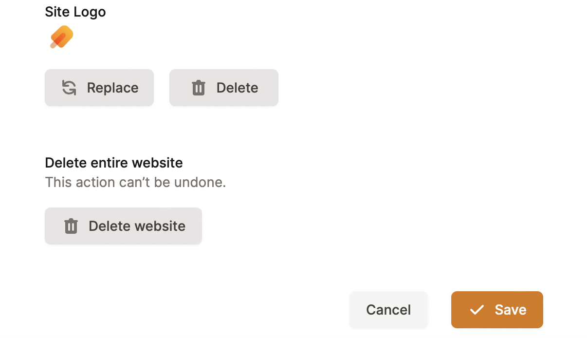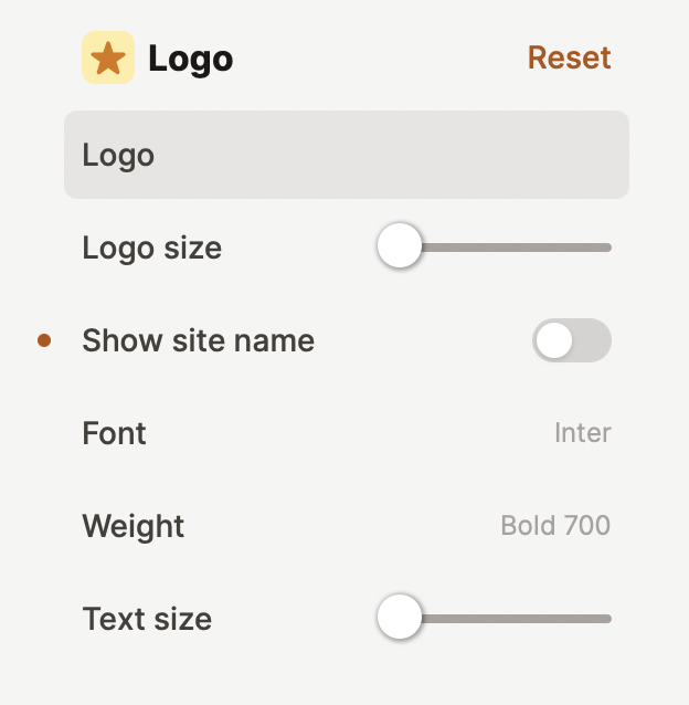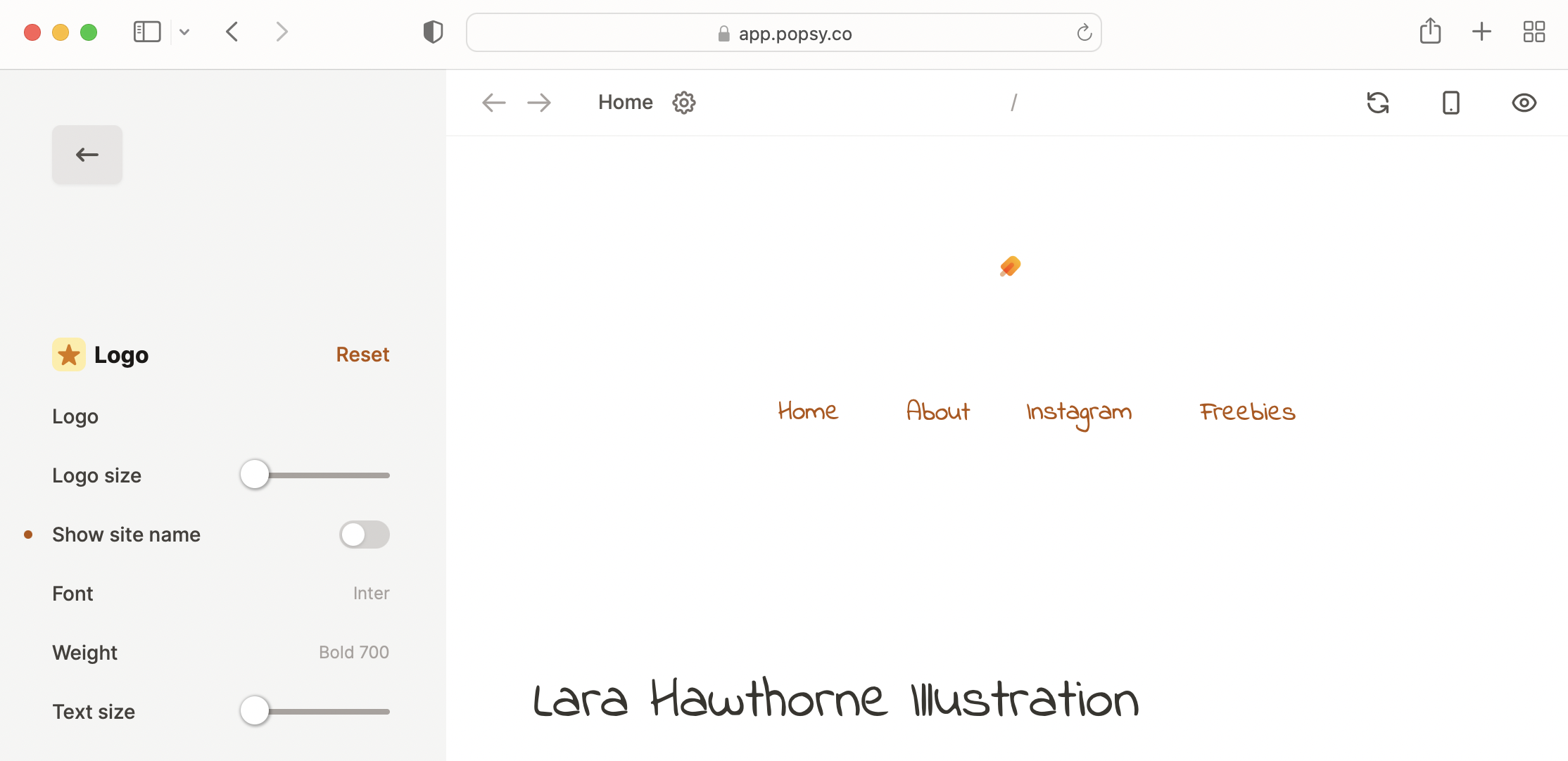 After you’re done, Popsy displays the logo on your Notion website. You are then able to control logo size, show the site name, and customize it.