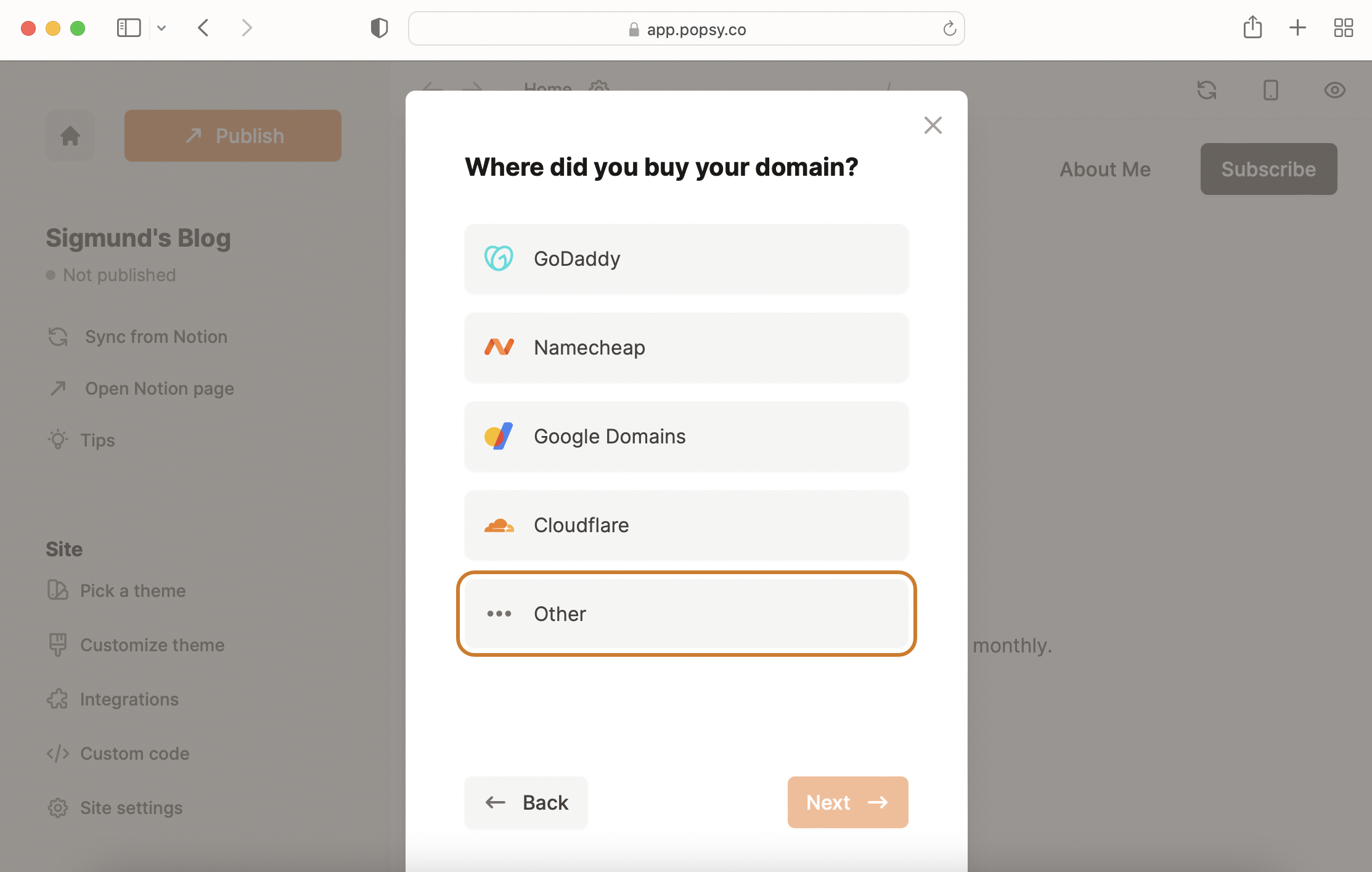 Open settings for the domain you want to use and find where it says something like Manage DNS.